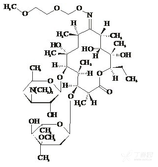 本品主要成份为罗红霉素,化学名为9-[O-[(2-甲氧基乙氧基)-甲基]肟基]红霉素。