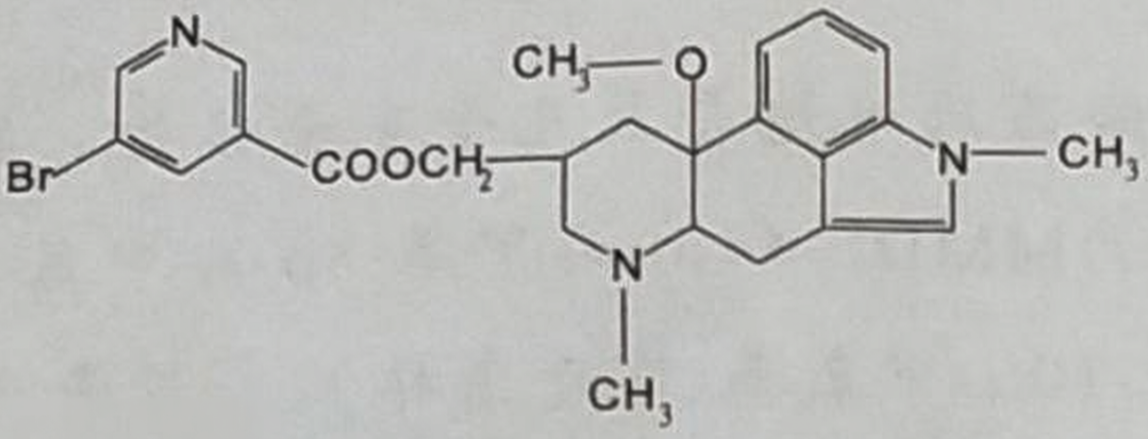 其化学名称为:10α-甲氧基-1,6-二甲基麦角林-8β-甲醇基-5-溴烟酸酯。