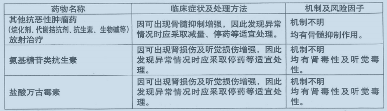 1. 谨慎用药(以下患者慎用)(1)骨髓抑制患者[骨髓抑制可能会加重[(参见“警告”项)]。 (2)肾损伤患者[肾损伤可能会加重[(参见“警告”项)]。 (3)肝损伤患者[肝损伤可能会加重]。 (4)...