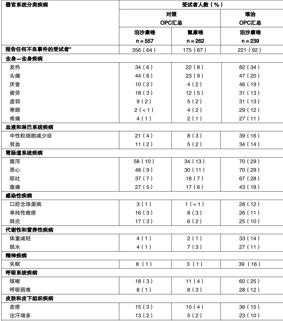 在实验室,未发现对泊沙康唑耐药的白念珠菌菌株;对泊沙康唑敏感性降低的烟曲霉实验自发突变发生频率上升为 1x10-8至 1x10-9。临床上白念珠菌和烟曲菌分离株对泊沙康唑敏感性有意义降低的现象很少见。在那些罕见的敏感性降低的病例中,未发现敏感性降低与临床治疗失败之间有明显关联。泊沙康唑在对其它唑类药物耐药的微生物感染患者中获得治疗成功;同时,体外泊沙康唑对其它唑类药物和成两性霉素 B 耐药的曲霉菌和念珠菌菌株具有活性作用。泊沙康唑对真菌治疗的折点尚未确立。