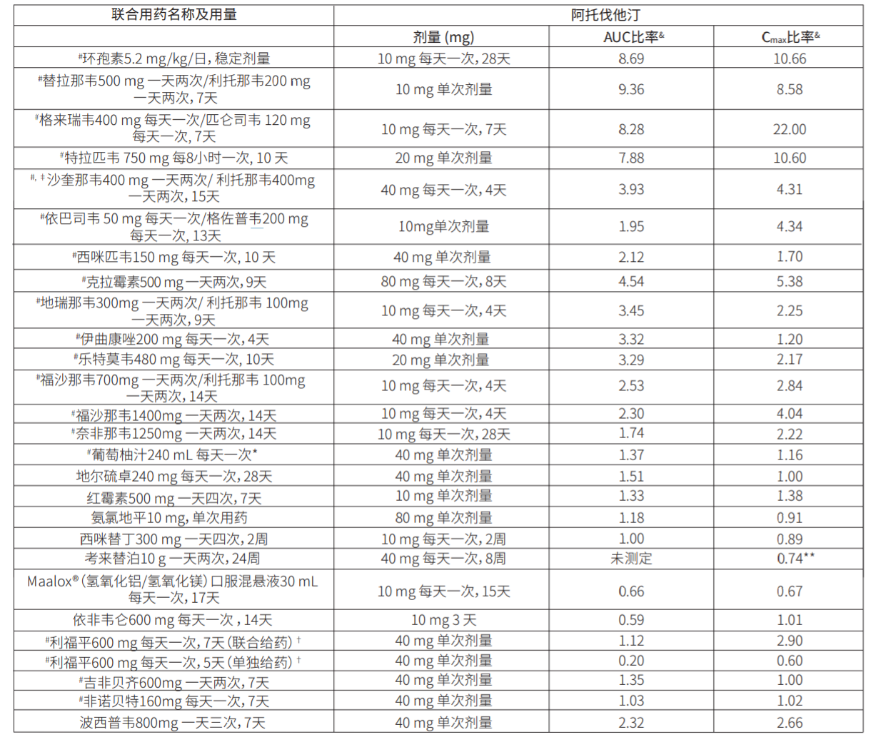 阿托伐他汀 | 联合用药名称及用量 | ||