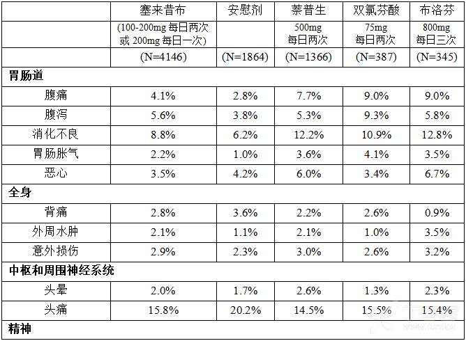 一项交叉设计的研究显示:在慢性肾功能不全的患者(肾小球滤过率(GFR)35-60 mL/min)中,塞来昔布的 AUC 较肾功能正常者减少约 40%。没有发现 GFR 和塞来昔布清除之间存在明显的相关。未在严重肾功能不全的患者中进行有关研究。与其他 NSAIDs 相似,不推荐在严重肾功能不全的患者中使用塞来昔布(见【注意事项】-警告)。