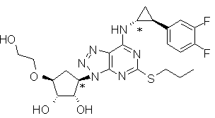 替格瑞洛 90 mg bid N = 209 | 氯吡格雷 75 mg od N = 207 | ||||